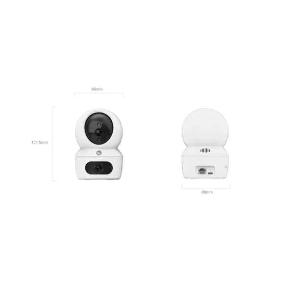 Features dual 2K+ lenses for ultra-clear video with a wide panoramic viewing range.